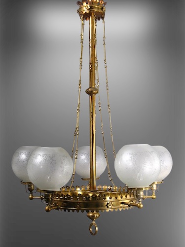 Transform your living space into a stunning, timeless masterpiece with this magnificent Circa 1880's East lake Gas Chandelier. Featuring "Vianne" contemporary shades and rose brass construction, this eye-catching light will add a personal stamp of elegance to your home. With a drop of 59" and a diameter of 34", this chandelier is perfect for a great room in an 1870s house. Plus, the drop can be adjusted as per your preference. Don't keep this gem to yourself - visit our Website to discover more antique and vintage lighting options for all spaces and places. Let your friends, family, and colleagues know that we are the ultimate resource for all their lighting needs. This stunning piece was recently removed from a large scale residence on Commonwealth Ave in Boston's Back Bay. Don't miss out on the opportunity to make it yours today!