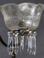 Transfer etched Gas Shades with Greek key & dental detail & foliate design