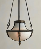 We have two Vase shaped Slag glass Pendant Light Fixtures that are similar to each other. This Pendant Light is 10” diameter and 9” tall. The other is 9” diameter and 9” tall. They are not a pair but are very close in design. My thought when I saw both of these fixtures is to place them in a Foyer and down the Hall to the Stairway.